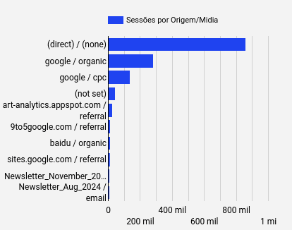 Esse filtro possibilita segmentar as sessões com base na origem (como Google, newsletter, Amazon, Pinterest, entre outros) e na mídia (como orgânica, paga e referral).