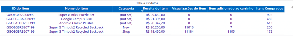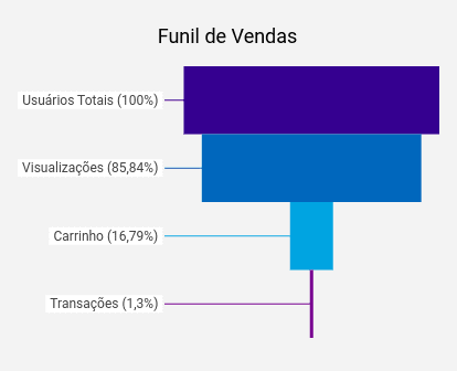 Exibe com percentuais cada etapa da jornada do usuário, sendo elas: Total de Usuários, Itens Visualizados, Itens Adicionados ao Carrinho e Transações.
