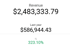 - Note: In addition to displaying the total revenue value, there is a comparison (percentage and quantitative) with the same period in the previous year.