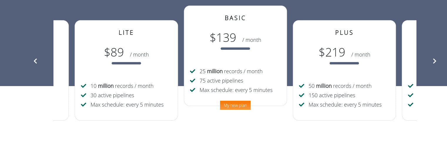 If the record limit of the plan is reached before the last day of the month, the pipelines will be automatically paused until the cycle restarts or the plan is upgraded. The record limit for all plans is always reset on the first day of each month.