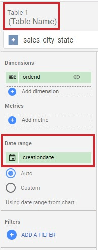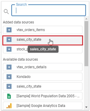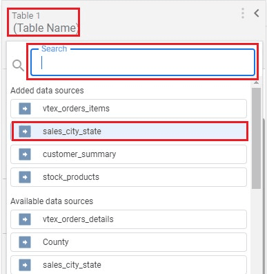 3 - In “Table 1,” search for the table you want to use; in this example, we will use the table “sales_city_state”;