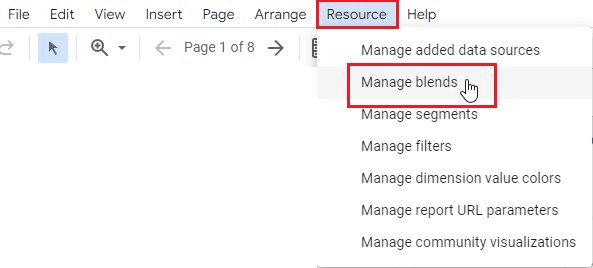 1 - In the Looker Studio taskbar, click on “Resource” and then on “Manage blends”;