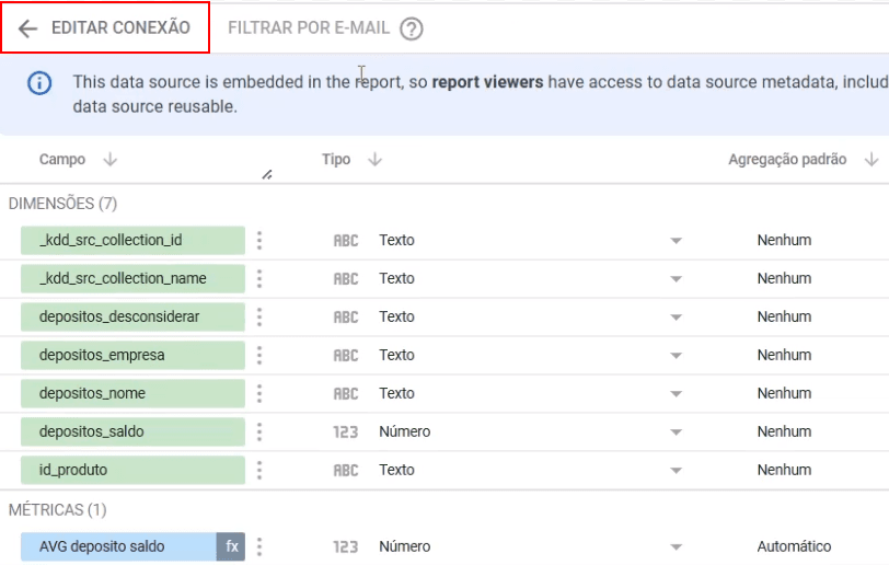4. Edite sua fonte de dados no Looker Studio